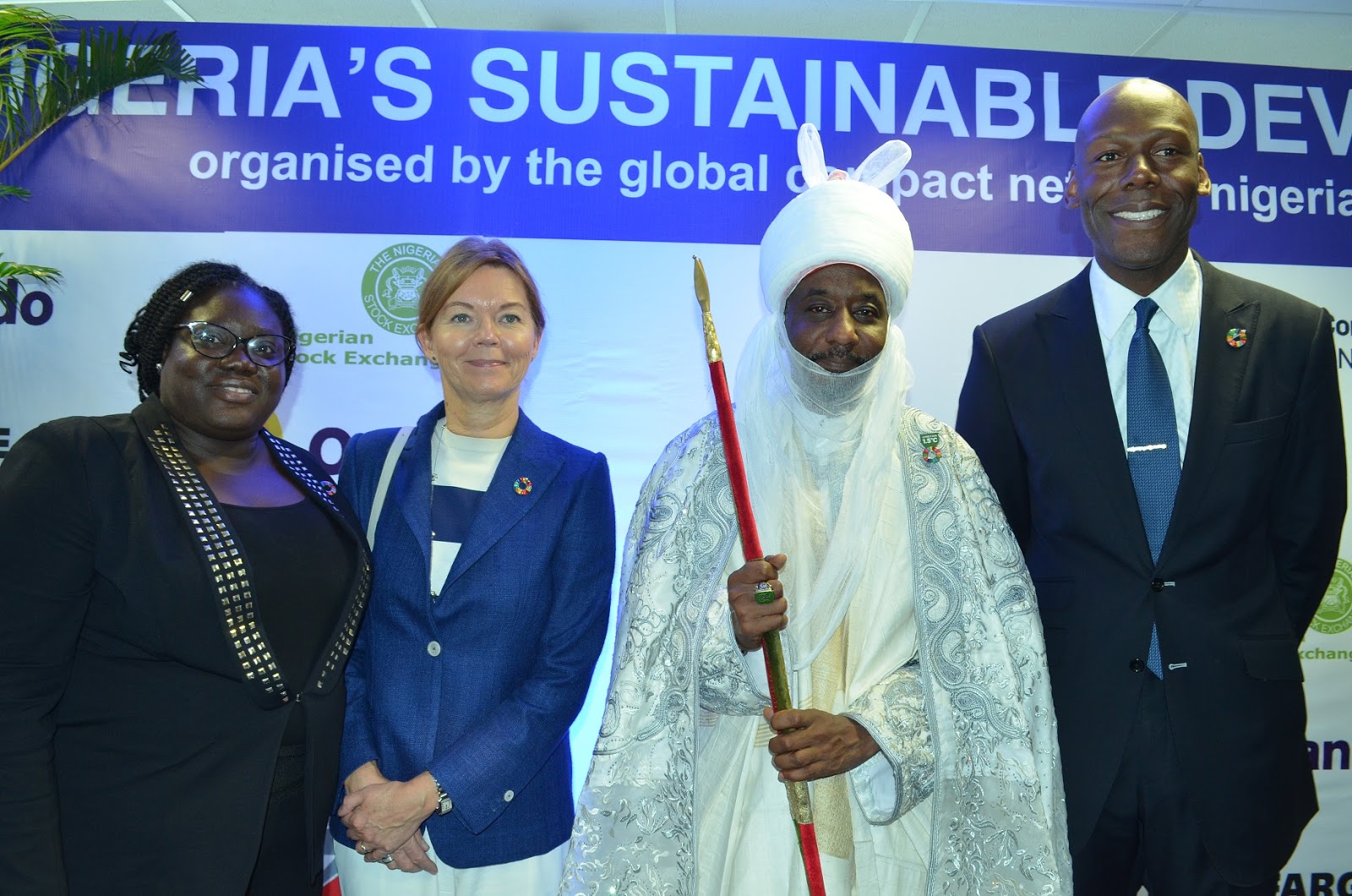 L-R: Head, Sustainability, Access Bank Plc., Omobolanle Victor-Laniyan; CEO and Executive Director, United Nations Global Compact, Lise Kingo; Emir of Kano, Muhammed Sanusi II; and Group Head, Corporate Communications and External Affairs, Access Bank Plc., Amaechi Okobi at the United Nations Global Compact Breakfast Dialogue held in Lagos.